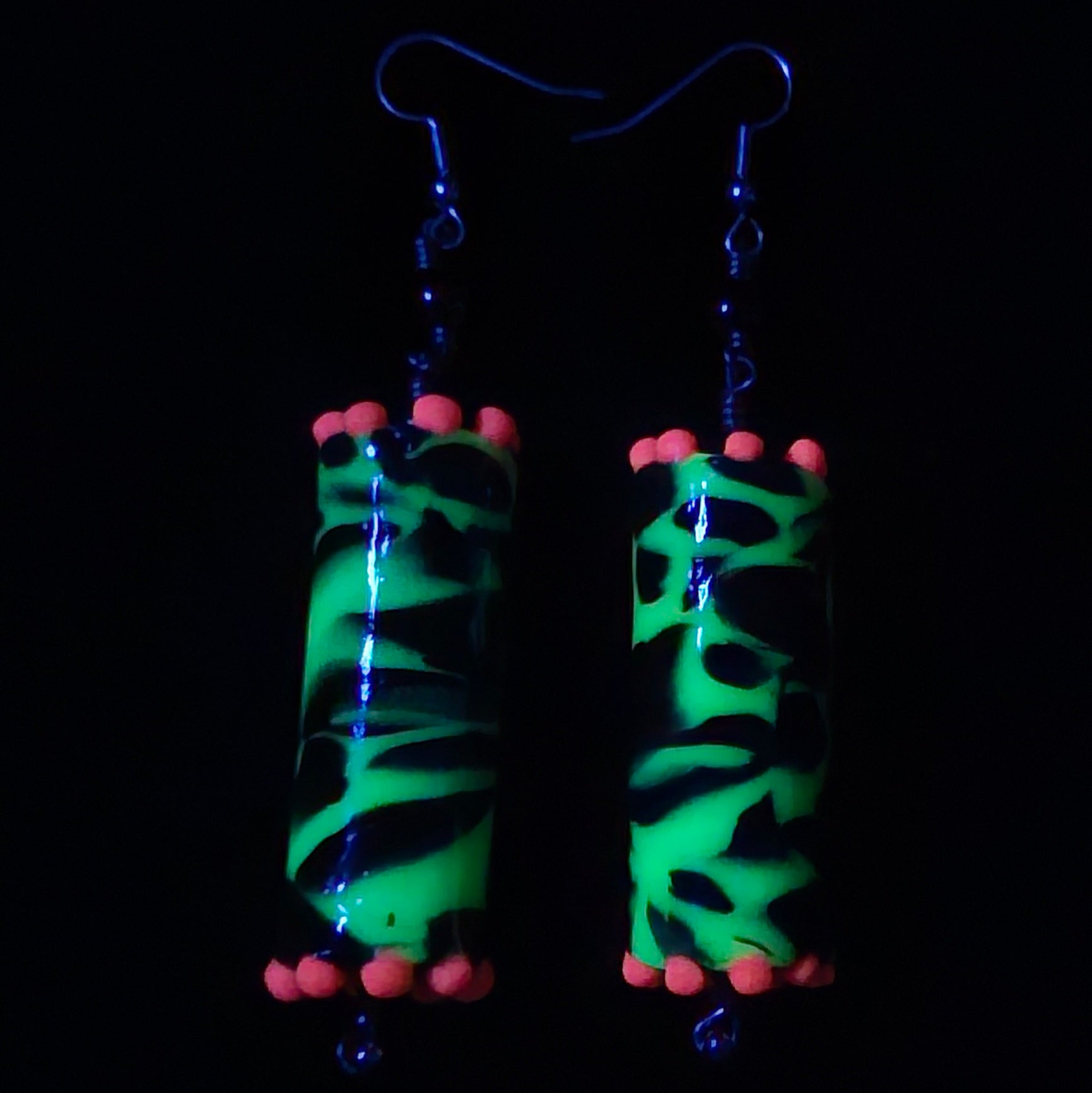 Hand sculpted light reactive polymer beads, hand wrapped stainless steel wire