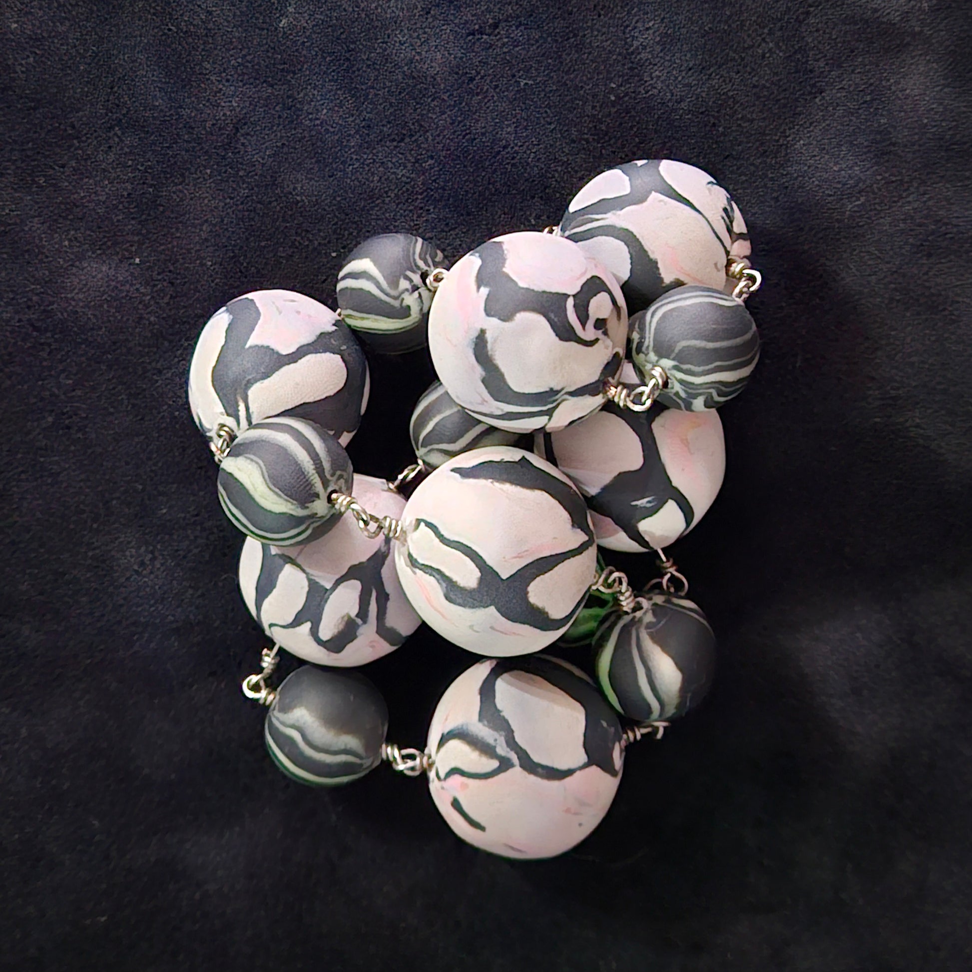 Hand sculpted light reactive polymer, hand wrapped stainless steel wire